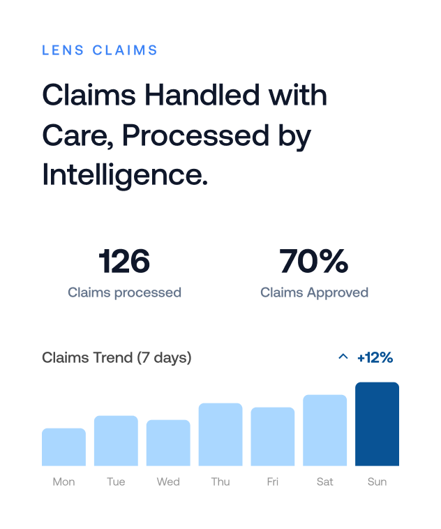 Insurance companies process thousands of claims daily — but manual review is slow, error-prone, and expensive. Lens Claims changes that.