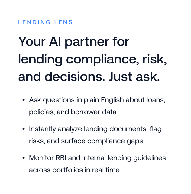 Think of Lens as your industry expert and Catalyst as your engine. · Lens products (Compliance, Claims, Lending) are "out-of-the-box" solutions tailored for specific financial and insurance workflows. · Catalyst tools (One, QL) are horizontal powerhouses—they allow you to chat with any document or query databases using natural language, regardless of your industry.